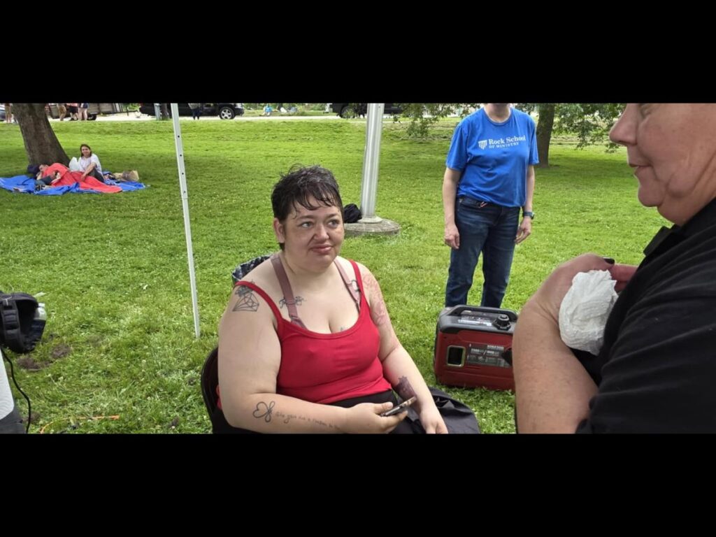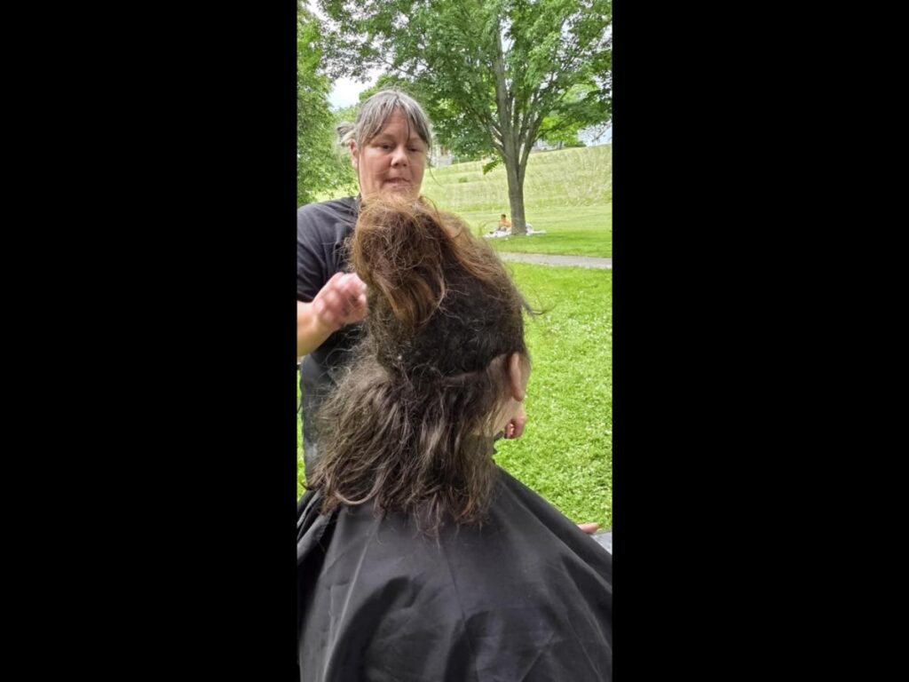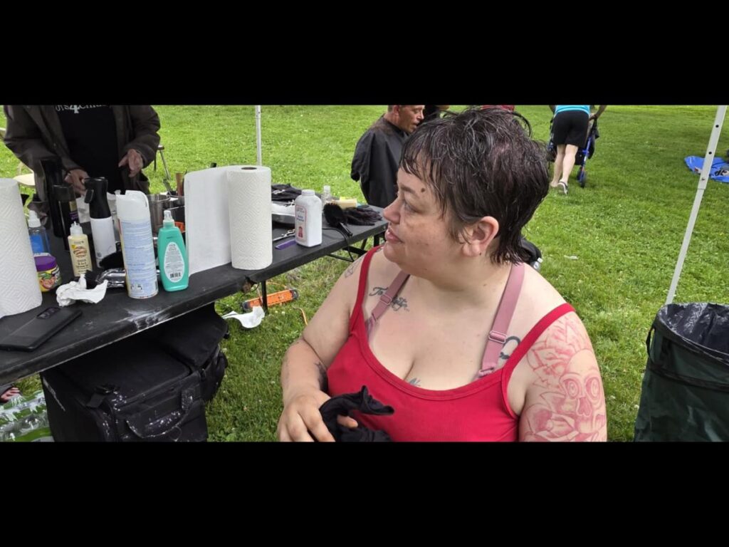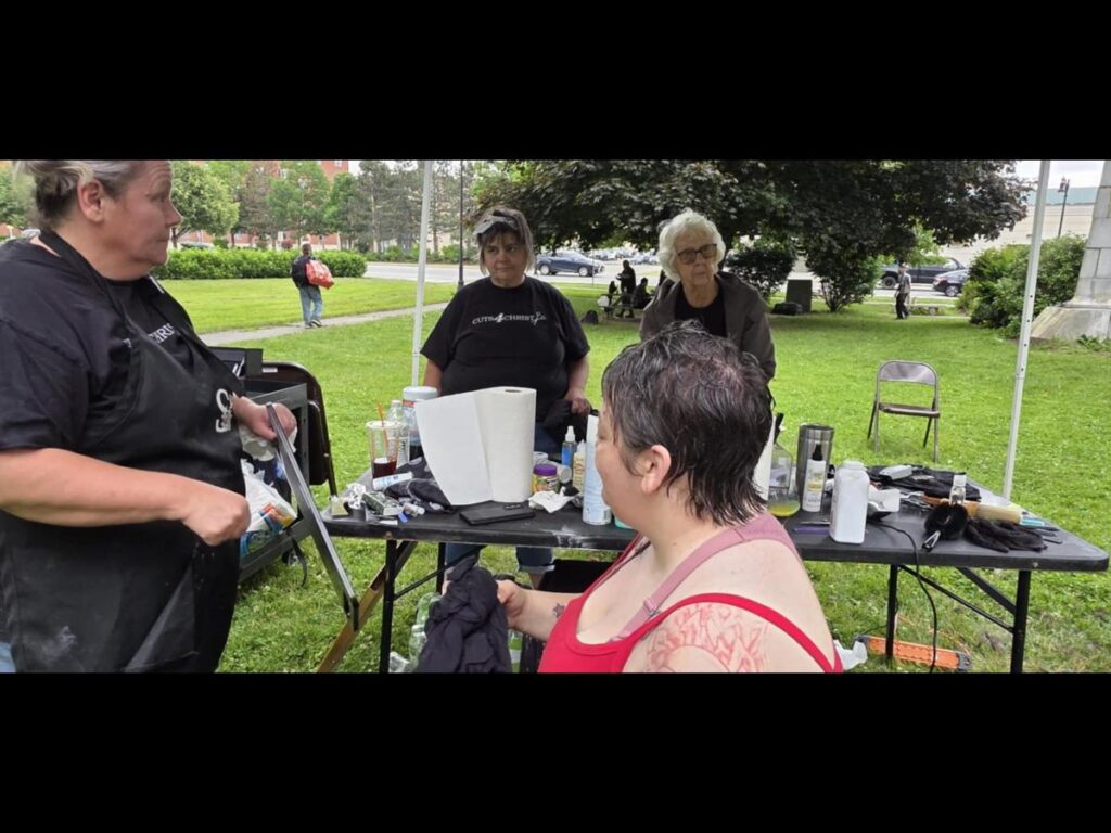 During an outreach event at Davenport Park in partnership with New Beginnings Church, the Cuts 4 Christ team met a woman who had recently been released from the hospital after two long months without proper hair care.
