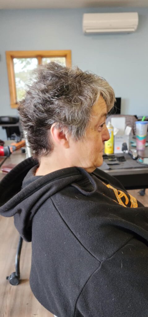 Val was the last haircut of the day. She walked in wearing a knit hat, quietly ashamed of what her hair looked like beneath it.